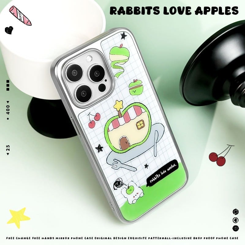 iPhone スマホケース iPhone 17 Air 16 15 14 13 12 Pro Max ゆるかわ手描き風 青リンゴとおうちのデザイン 保護ケース
