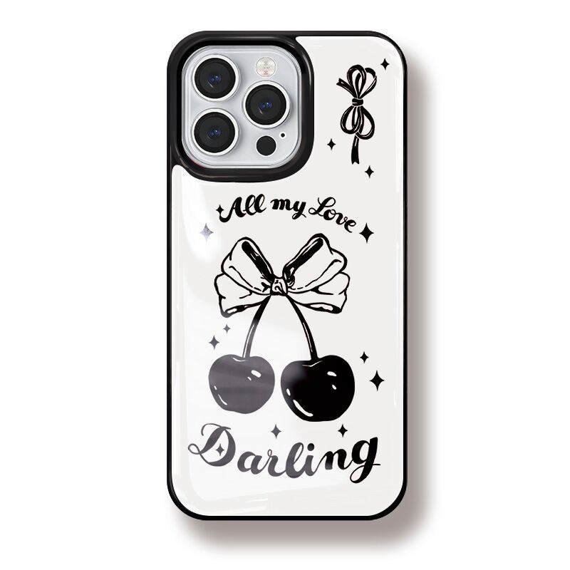 iPhone スマホケース iPhone 17 Air 16 15 14 13 12 Pro Max レトロ手描き風 モノクロさくらんぼデザイン保護ケース