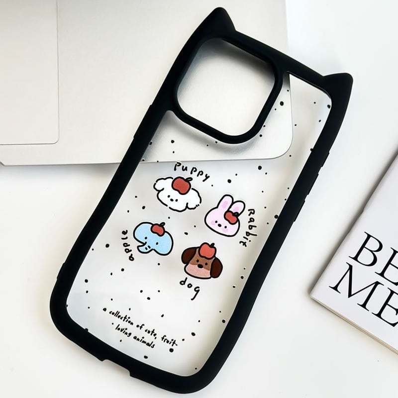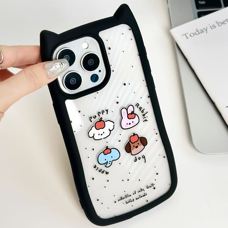 iPhone スマホケース iPhone 17 Air 16 15 14 13 12 Pro Max かわいいネコ耳付き 癒し系小動物柄 保護ケース