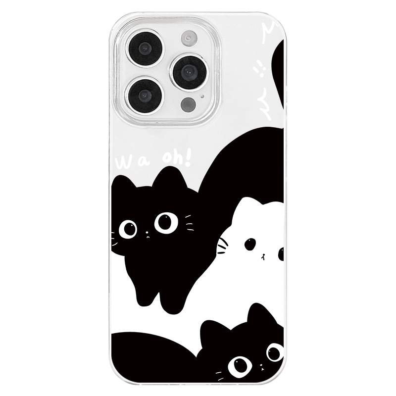iPhone 17 16e 15 14 Plus 13 12 11 Pro Max スマホケース 可愛くて心温まる猫たちが重なり合う パターン印刷二重層IMDホワイトスマホケース