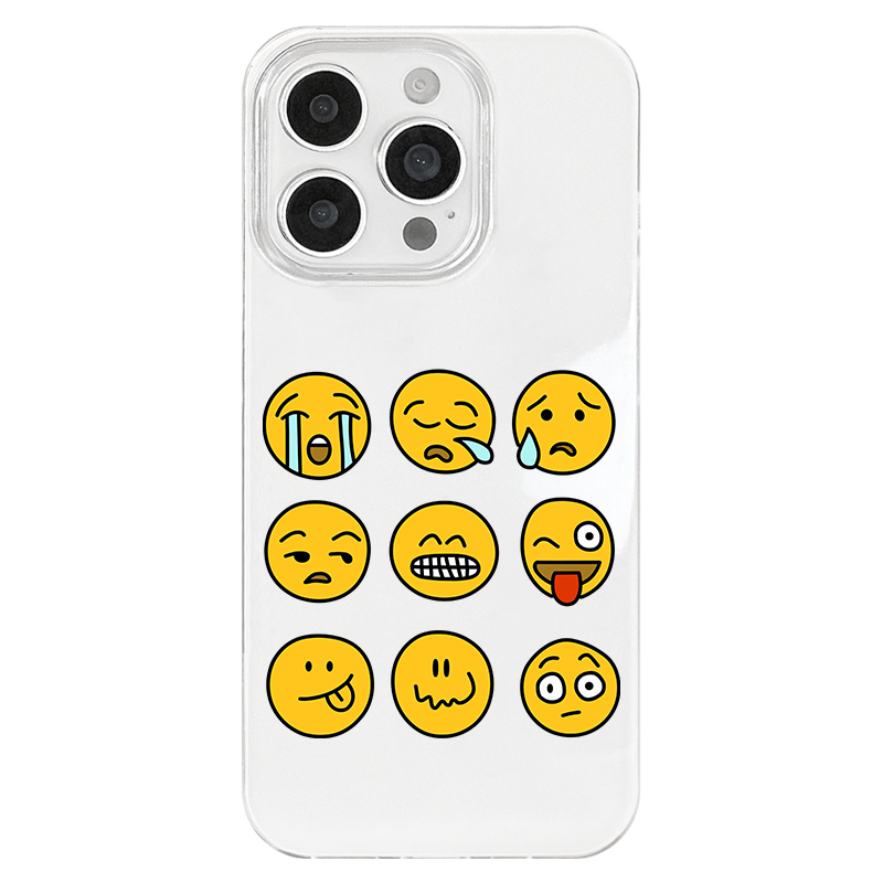 iPhone 17 16e 15 14 Plus 13 12 11 Pro Max スマホケース 面白い絵文字emojiアイコンパターン印刷二重層IMDホワイトスマホケース