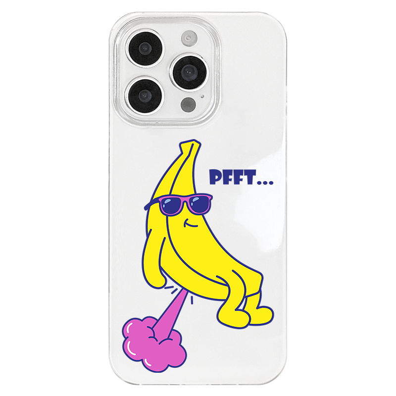 iPhone 17 16e 15 14 Plus 13 12 11 Pro Max スマホケース 面白いオナラバナナパターン印刷二重層IMDホワイトスマホケース