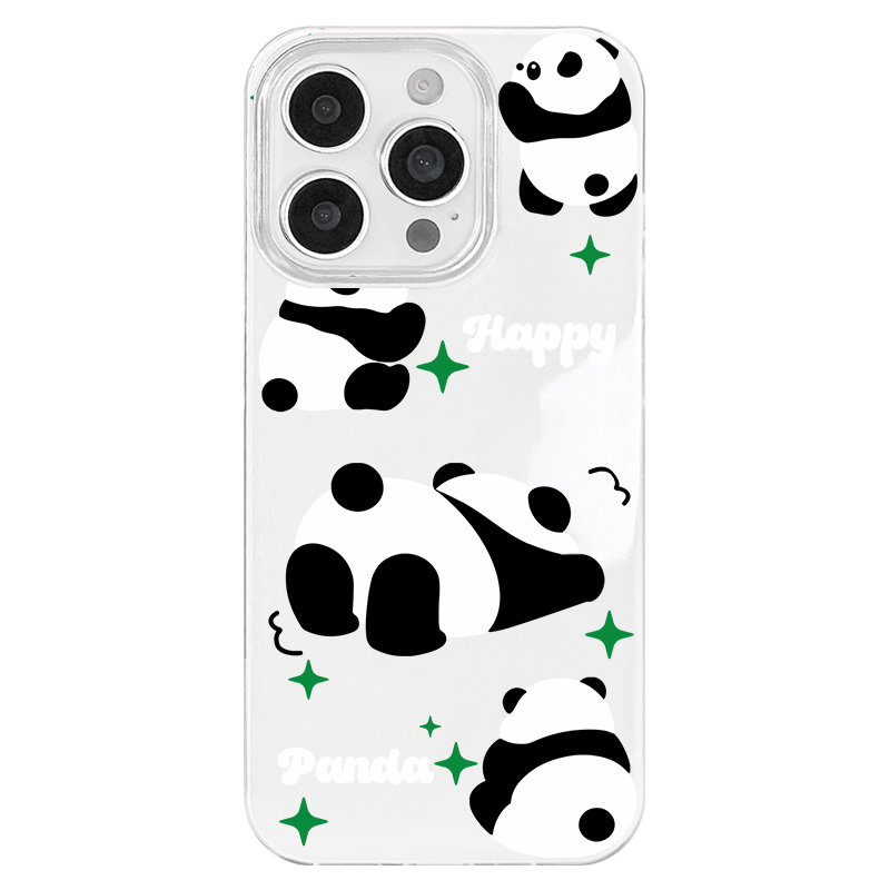 iPhone 17 16e 15 14 Plus 13 12 11 Pro Max スマホケース 可愛くて元気なパンダ柄パターン印刷二重層IMDホワイトスマホケース
