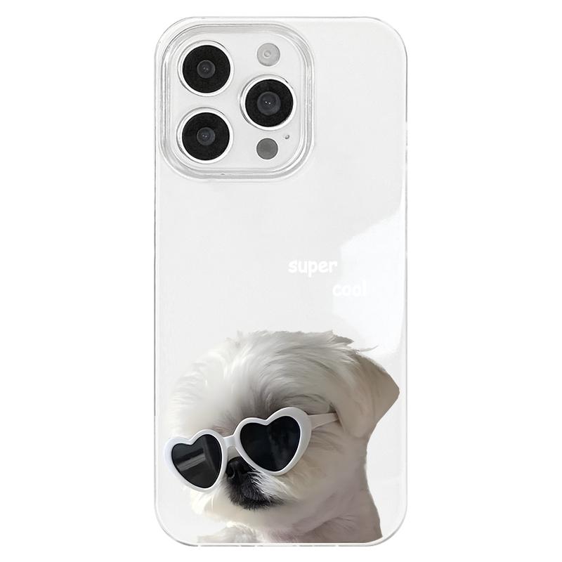 iPhone 17 16e 15 14 Plus 13 12 11 Pro Max スマホケース サングラスをかけた可愛くて面白い犬パターン印刷二重層IMDホワイトスマホケース