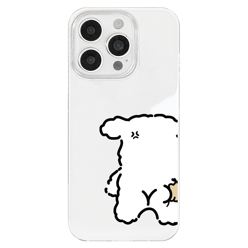 iPhone 17 16e 15 14 Plus 13 12 11 Pro Max スマホケース 可愛くてコミカルな お尻をつつく白い子犬デザインパターン印刷二重層IMDホワイトスマホケース