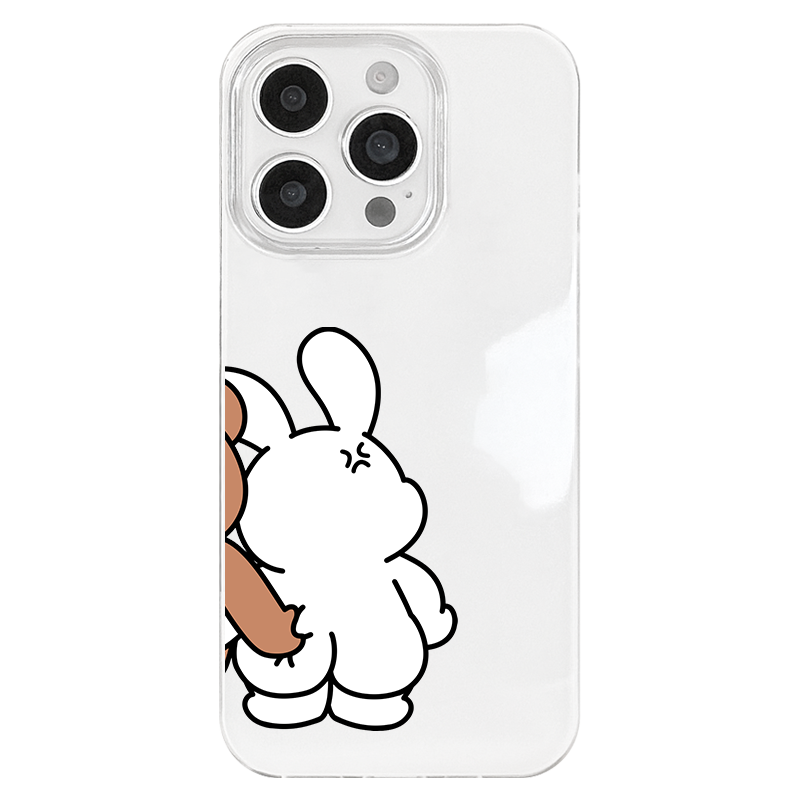iPhone 17 16e 15 14 Plus 13 12 11 Pro Max スマホケース 可愛くてコミカルな お尻をつつくうさぎデザインパターン印刷二重層IMDホワイトスマホケース