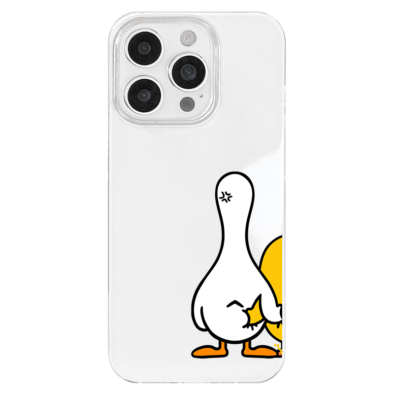 iPhone 17 16e 15 14 Plus 13 12 11 Pro Max スマホケース 可愛くてコミカルな お尻をつつくアヒルデザインパターン印刷二重層IMDホワイトスマホケース
