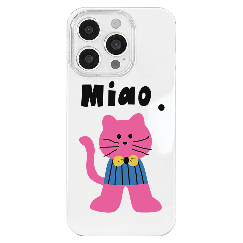iPhone 17 16e 15 14 Plus 13 12 11 Pro Max スマホケース かわいくて面白いピンクの猫パターン印刷二重層IMDホワイトスマホケース