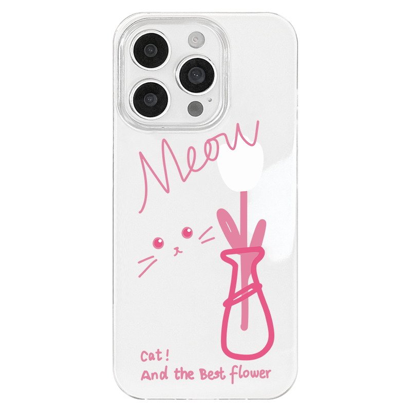 iPhone 17 16e 15 14 Plus 13 12 11 Pro Max スマホケース かわいい抽象なピンクの花瓶の猫パターン印刷二重層IMDホワイトスマホケース