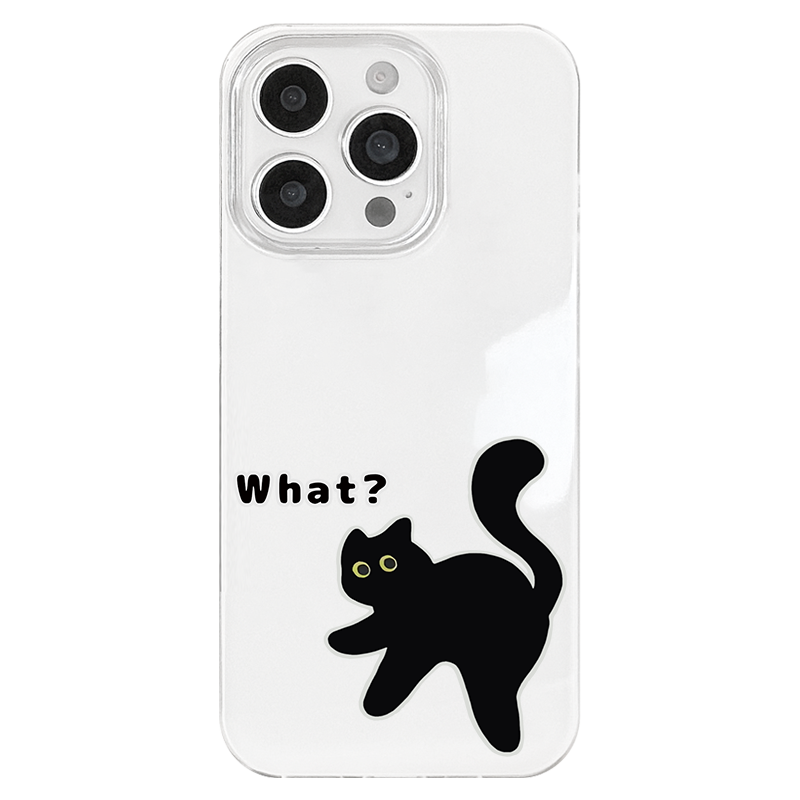 iPhone 17 16e 15 14 Plus 13 12 11 Pro Max スマホケース 振り返っている面白い黒猫パターン印刷二重層IMDホワイトスマホケース