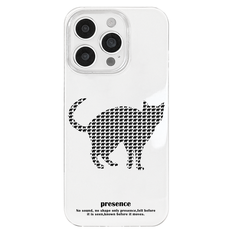iPhone 17 16e 15 14 Plus 13 12 11 Pro Max スマホケース クラシックな白黒のチェック柄の猫パターン印刷二重層IMDホワイトスマホケース