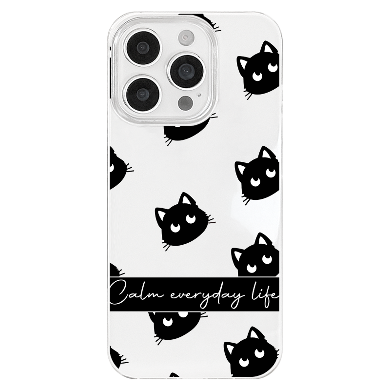 iPhone 17 16e 15 14 Plus 13 12 11 Pro Max スマホケース かわいくて楽しい黒猫の頭パターン印刷二重層IMDホワイトスマホケース