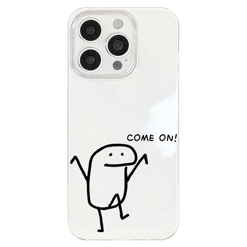 iPhone 17 16e 15 14 Plus 13 12 11 Pro Max スマホケース 腕を伸ばしたキュートで面白いキャラクターパターン印刷二重層IMDホワイトスマホケース