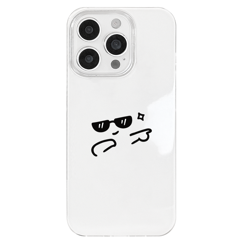 iPhone 17 16e 15 14 Plus 13 12 11 Pro Max スマホケース サングラスをかけながらのキュートでドヤ顔な表情パターン印刷二重層IMDホワイトスマホケース