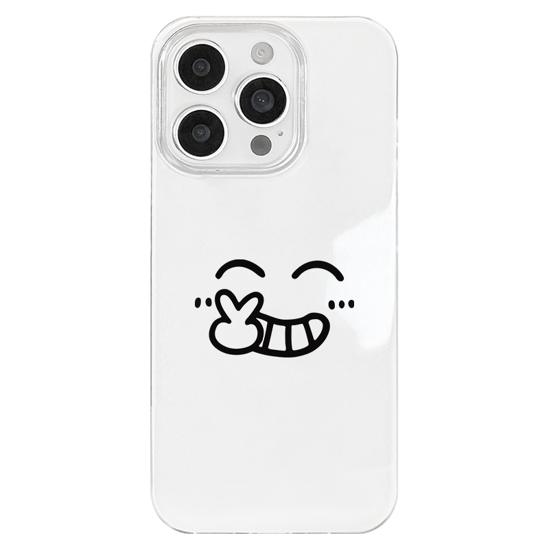iPhone 17 16e 15 14 Plus 13 12 11 Pro Max スマホケース かわいい得意げな笑顔のパターン印刷二重層IMDホワイトスマホケース