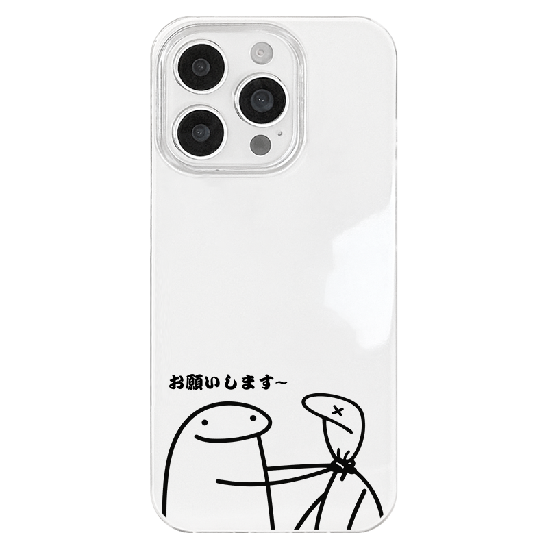iPhone 17 16e 15 14 Plus 13 12 11 Pro Max スマホケース 面白い「お願いします」のパターン印刷二重層IMDホワイトスマホケース