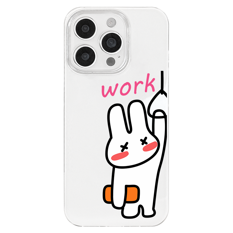 iPhone 17 16e 15 14 Plus 13 12 11 Pro Max スマホケース かわいくて面白い働くウサギパターン印刷二重層IMDホワイトスマホケース