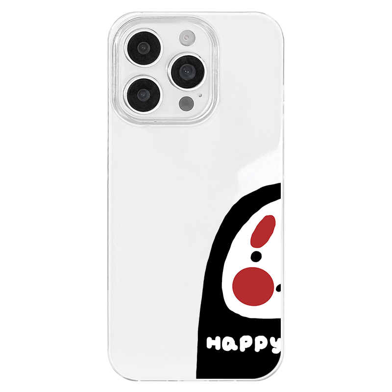 iPhone 17 16e 15 14 Plus 13 12 11 Pro Max スマホケース ひょっこりお面風フェイス ゆるキャラデザインのパターン印刷二重層IMDホワイトスマホケース