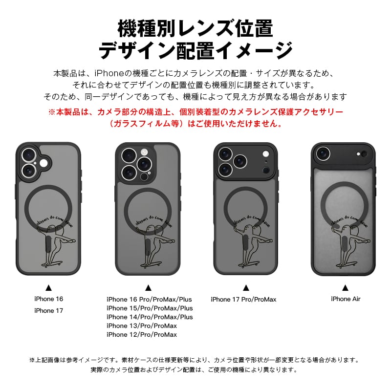 iPhone 17 Air 16 15 Plus 14 13 12 Pro Max スマホケース ユーモラスで楽しいバランスキャラクター柄 プリントデザイン半透明ブラックマット仕上げMagSafe対応スマホケース