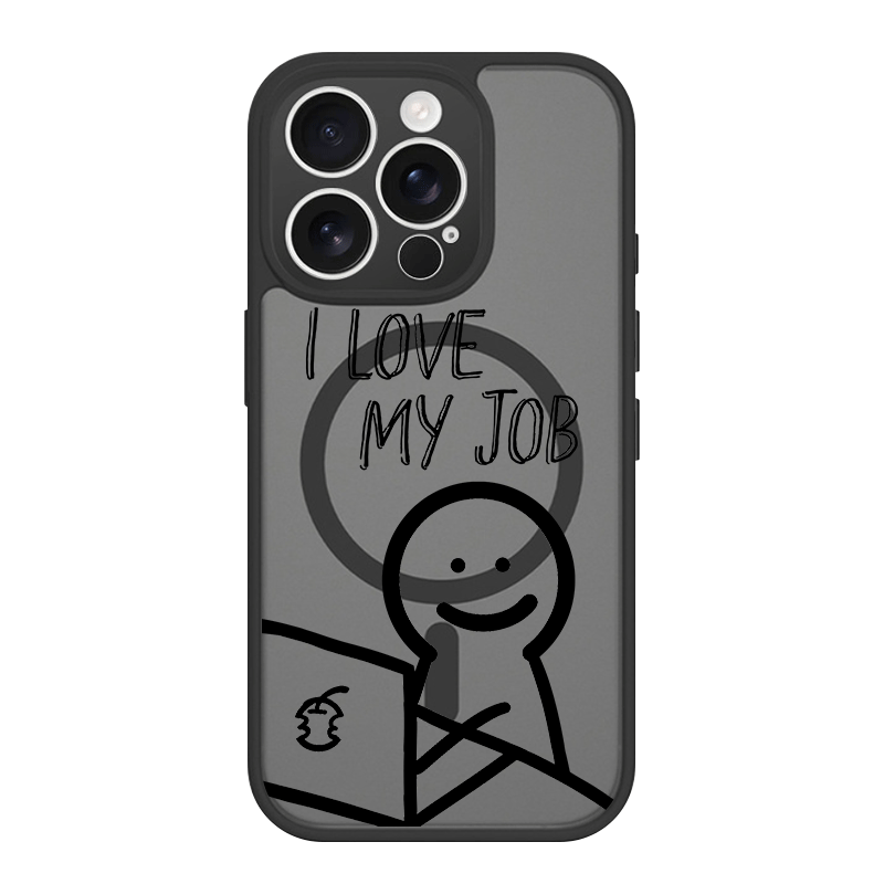 iPhone 17 Air 16 15 Plus 14 13 12 Pro Max スマホケース ゆるくて可愛いスマイルキャラクター柄 プリントデザイン半透明ブラックマット仕上げMagSafe対応スマホケース