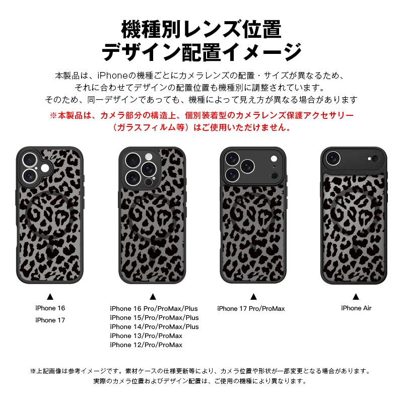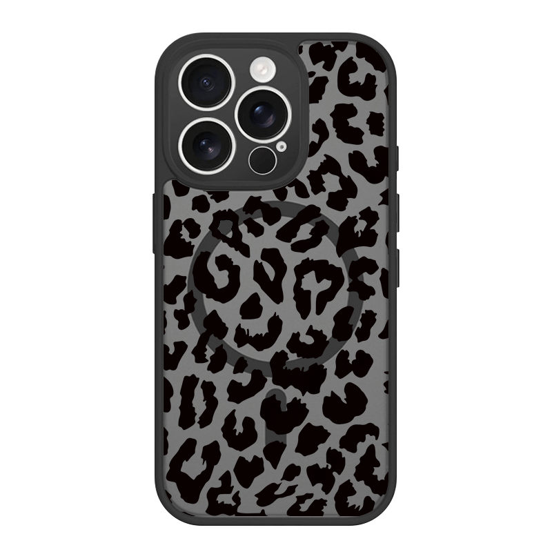 iPhone 17 Air 16 15 Plus 14 13 12 Pro Max スマホケース クールでおしゃれなモノトーンレオパード柄 プリントデザイン半透明ブラックマット仕上げMagSafe対応スマホケース
