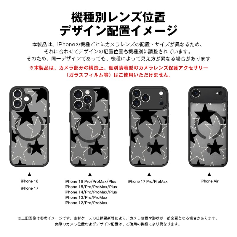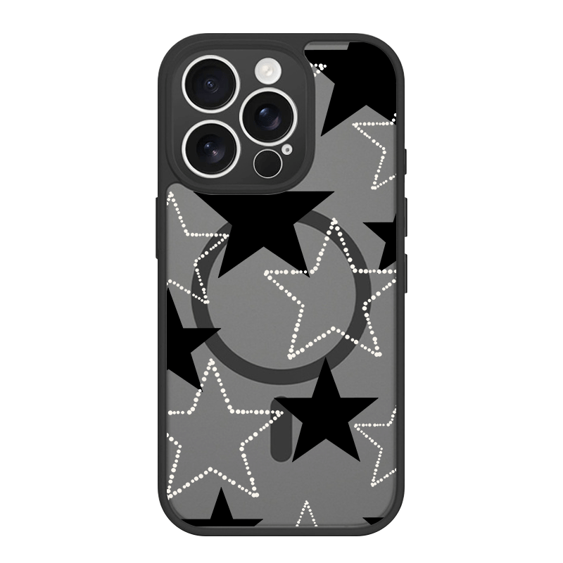 iPhone 17 Air 16 15 Plus 14 13 12 Pro Max スマホケース ポップで可愛いスターコラージュ総柄 プリントデザイン半透明ブラックマット仕上げMagSafe対応スマホケース