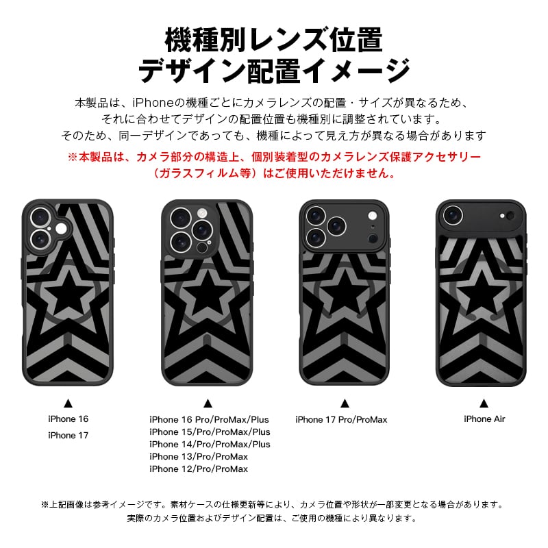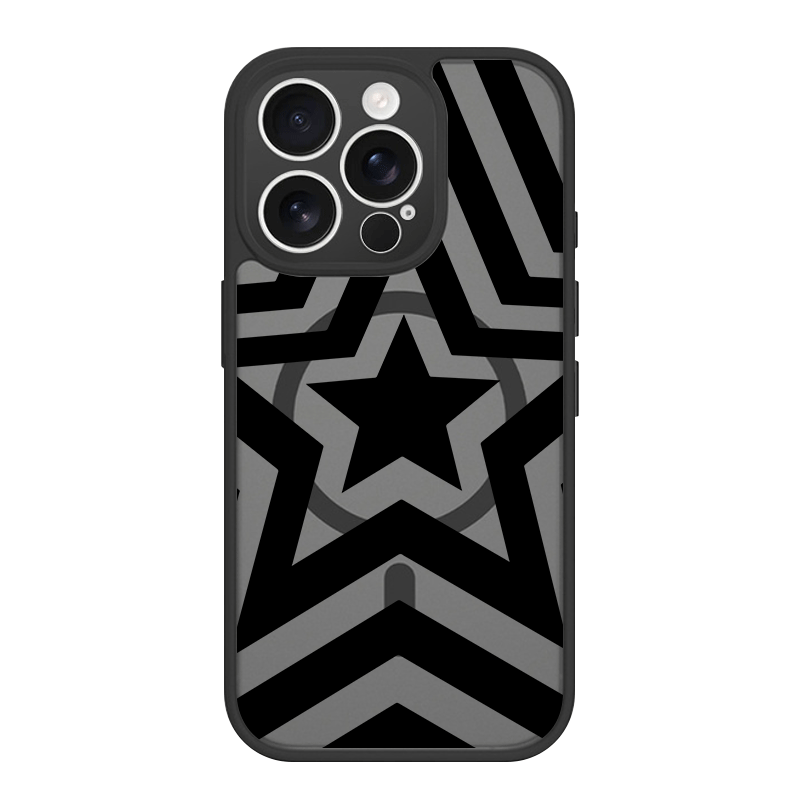 iPhone 17 Air 16 15 Plus 14 13 12 Pro Max スマホケース クールでおしゃれなレイヤースター柄 プリントデザイン半透明ブラックマット仕上げMagSafe対応スマホケース