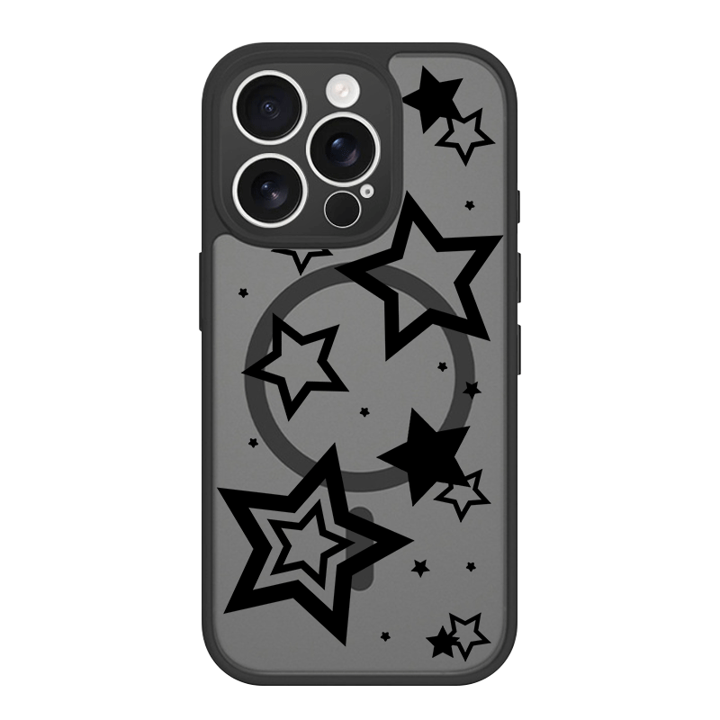 iPhone 17 Air 16 15 Plus 14 13 12 Pro Max スマホケース ポップで可愛いスター散りばめ柄 プリントデザイン半透明ブラックマット仕上げMagSafe対応スマホケース