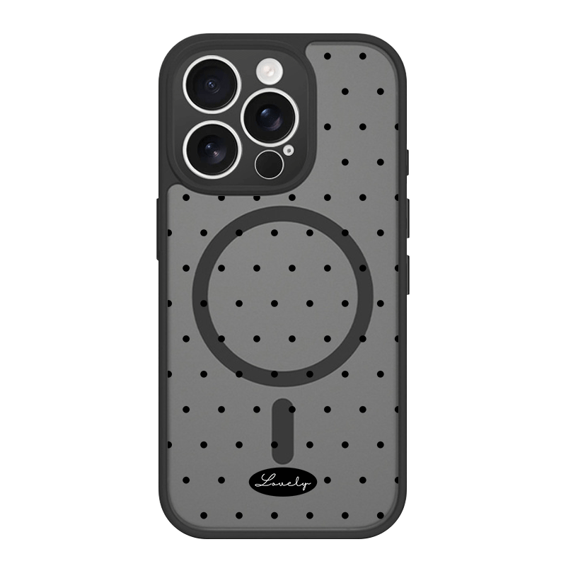iPhone 17 Air 16 15 Plus 14 13 12 Pro Max スマホケース シンプルで可愛いミニドット総柄 プリントデザイン半透明ブラックマット仕上げMagSafe対応スマホケース