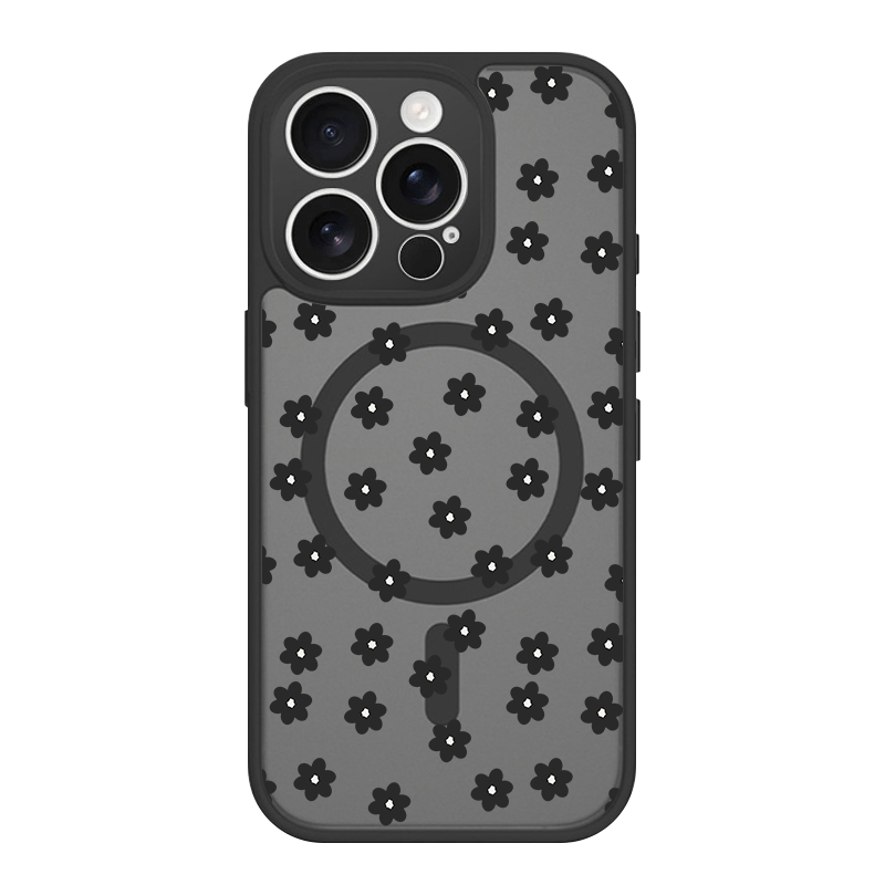 iPhone 17 Air 16 15 Plus 14 13 12 Pro Max スマホケース ナチュラルで可愛いミニフラワー総柄 プリントデザイン半透明ブラックマット仕上げMagSafe対応スマホケース