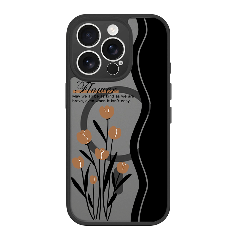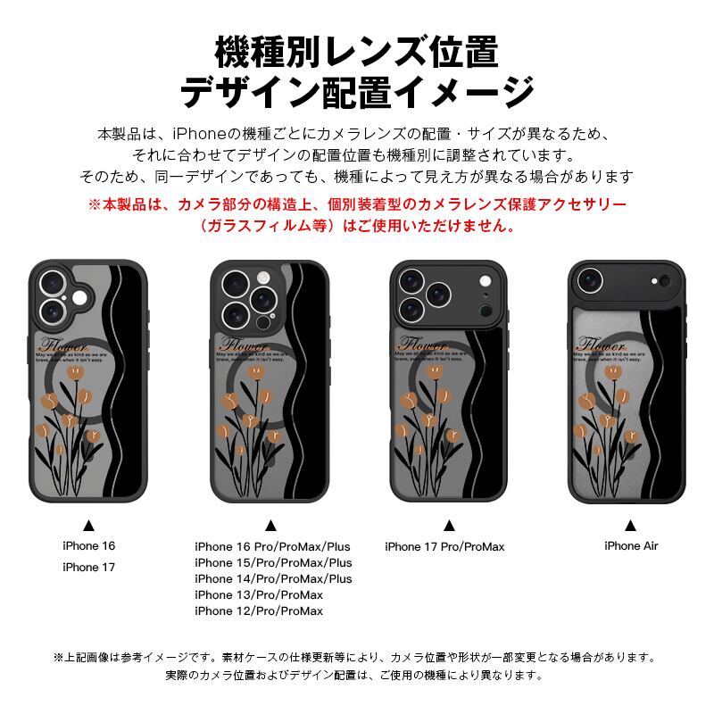 iPhone 17 Air 16 15 Plus 14 13 12 Pro Max スマホケース 上品でおしゃれなアートフラワーライン柄 プリントデザイン半透明ブラックマット仕上げMagSafe対応スマホケース