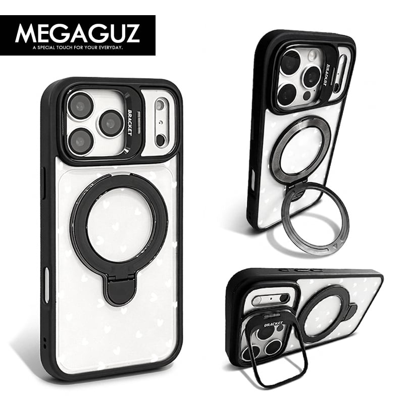 【国内発送】 モノトーン小粒ホワイトハート柄デザインプリント iPhone 17 16 15 14 13 Pro Max スマホケース iPhone 17e 16eケース 高級感デザインプリント多機能ダブルスタンド搭載Magsafe背面クリアケース