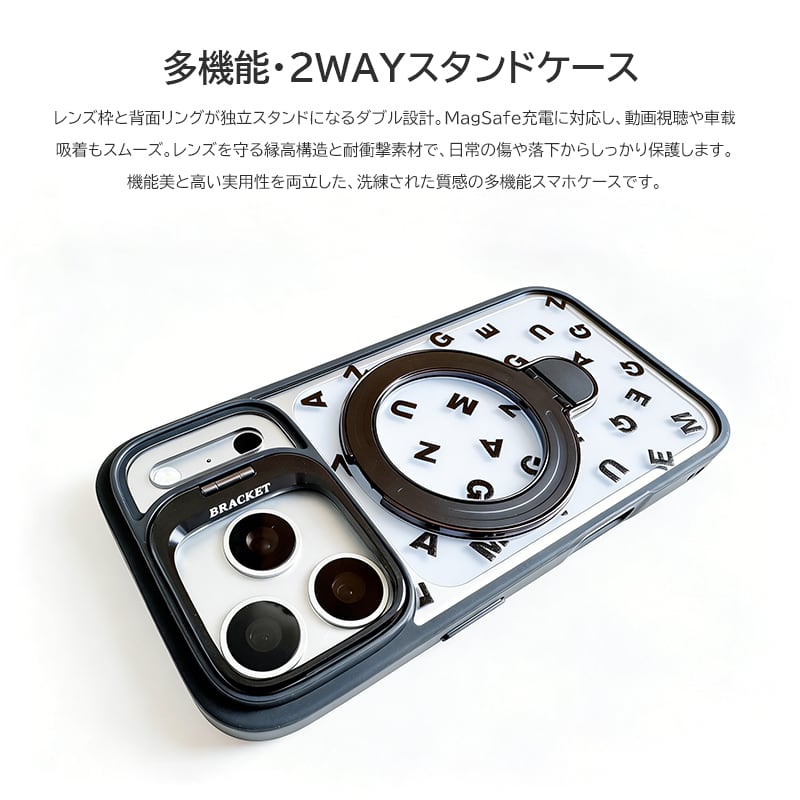 背面の磁気リングだけでなく、カメラフレームもスタンドとして使用可能。縦置き・横置き、シーンに合わせて角度を自由自在に調整できます。