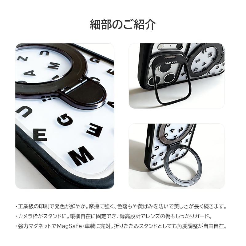 背面の磁気リングだけでなく、カメラフレームもスタンドとして使用可能。縦置き・横置き、シーンに合わせて角度を自由自在に調整できます。