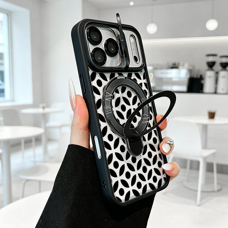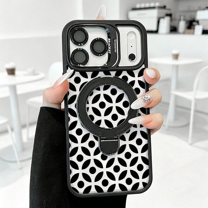 【国内発送】幾何学モノトーン総柄 iPhone 17 16 15 14 13 Pro Max スマホケース iPhone 17e 16eケース 高級感デザインプリント多機能ダブルスタンド搭載Magsafe背面クリアケース