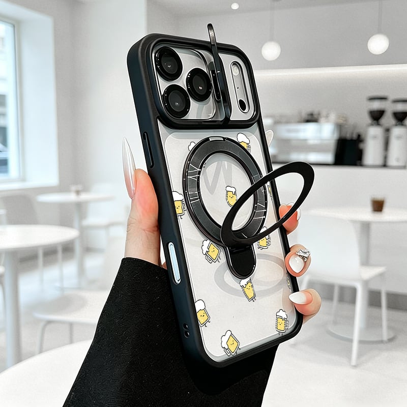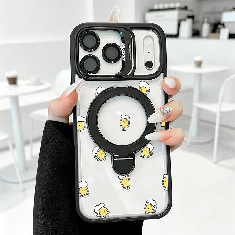 【国内発送】ミニビール総柄ポップ iPhone 17 16 15 14 13 Pro Max スマホケース iPhone 17e 16eケース 高級感デザインプリント多機能ダブルスタンド搭載Magsafe背面クリアケース