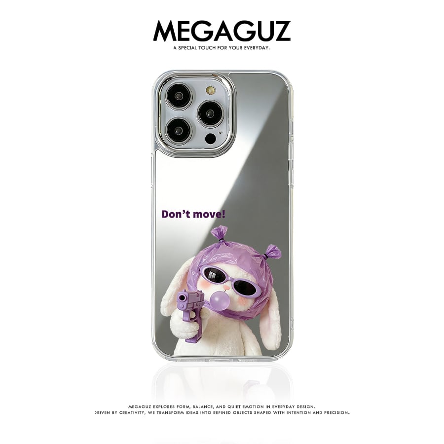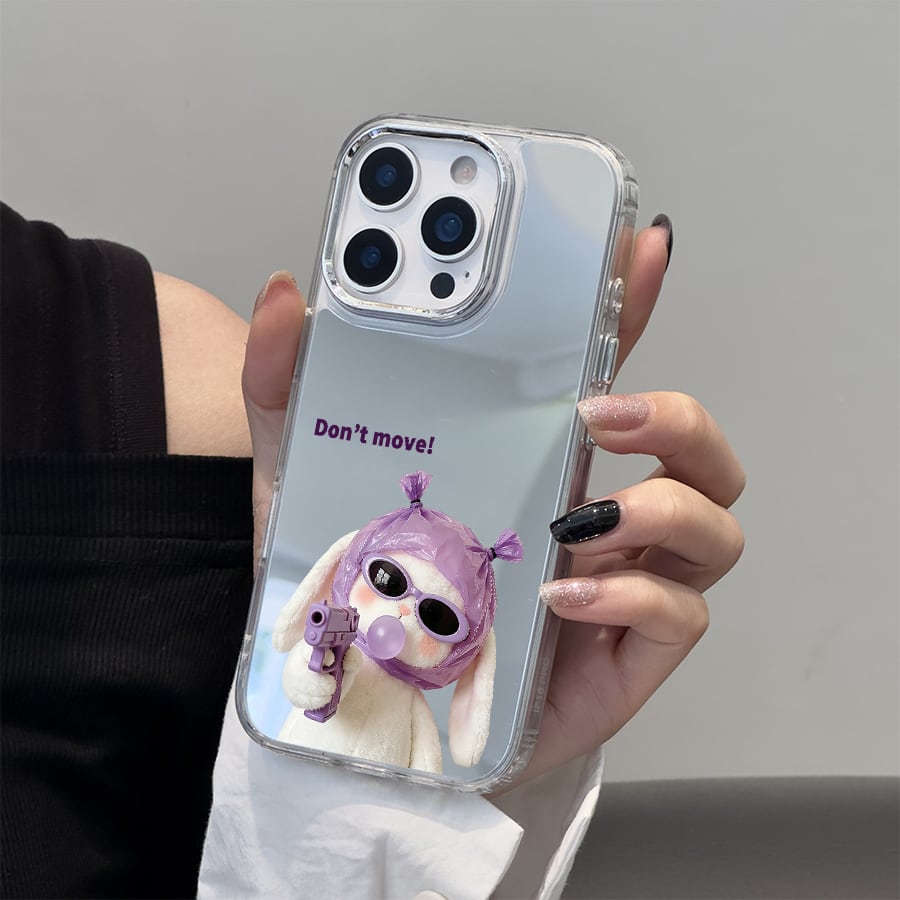 【国内発送】動くなと言わんばかりの強気ウサギデザインプリント iPhone 17 16 15 14 13 12 Pro Max スマホケース iphone 17e 16eケース 大人可愛い光沢鏡面アクリル背面ミラーケース