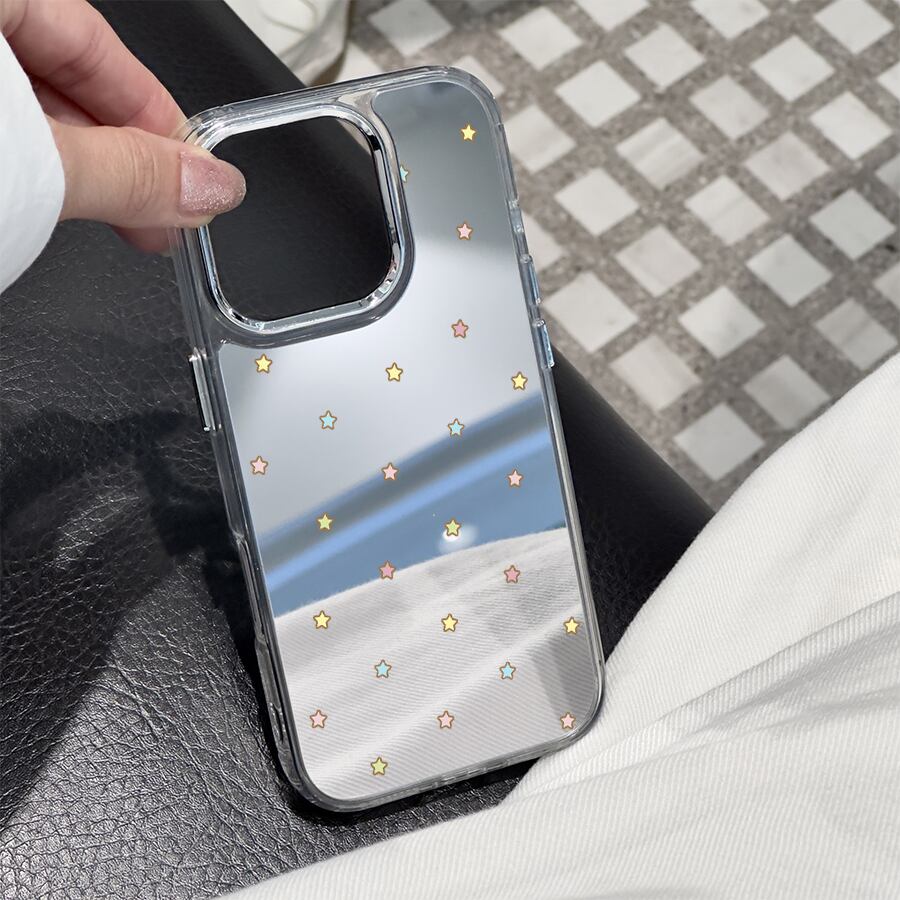 【国内発送】パステルカラーの夢みるお星様デザインプリント iPhone 17 16 15 14 13 12 Pro Max スマホケース iphone 17e 16eケース 大人可愛い光沢鏡面アクリル背面ミラーケース