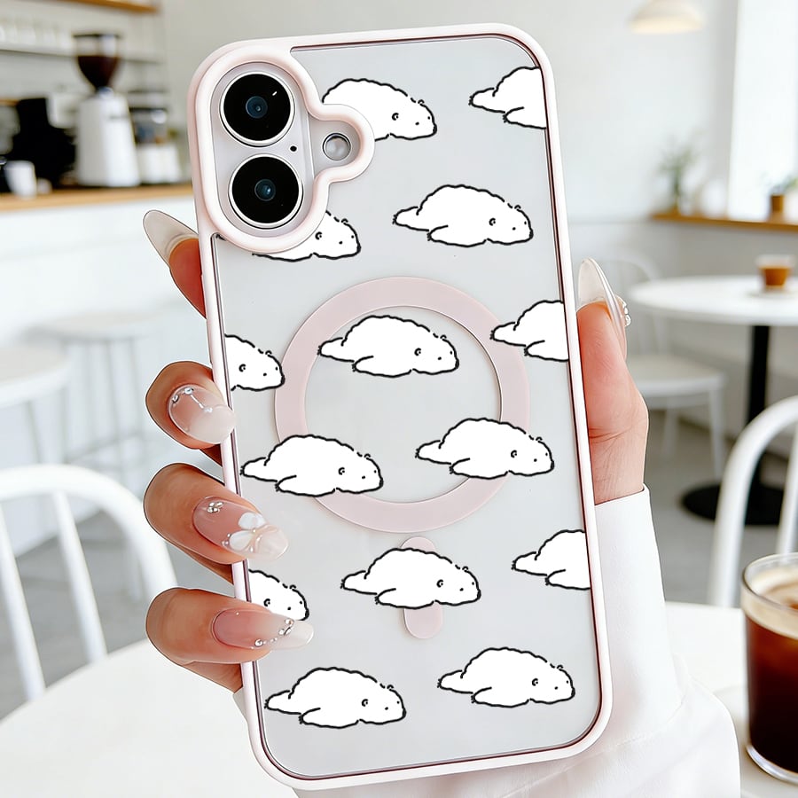 iPhone 17 16 15 14 13 12 Pro Max スマホケース iPhone 17e/16eケース ほっこり癒しホッキョクグマパターンデザインプリントケース 可愛いシンプル軽量薄型カラーフレームMagsafeケース