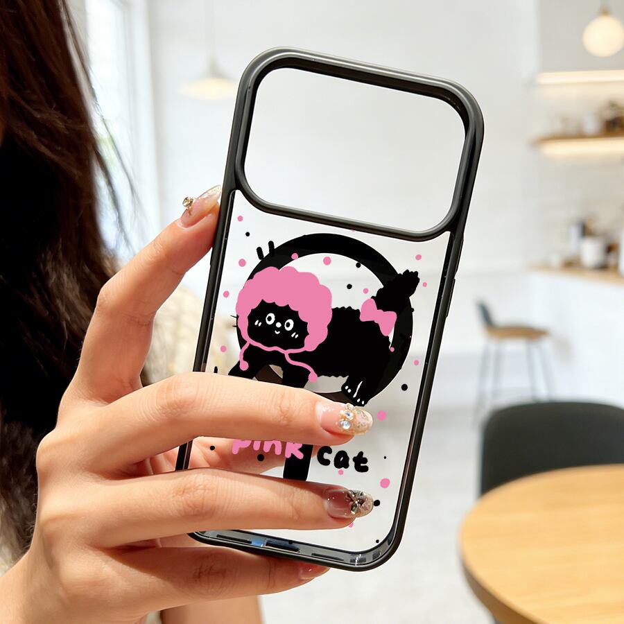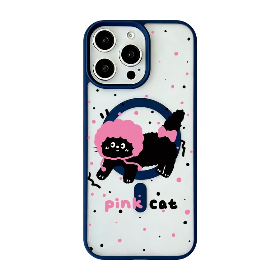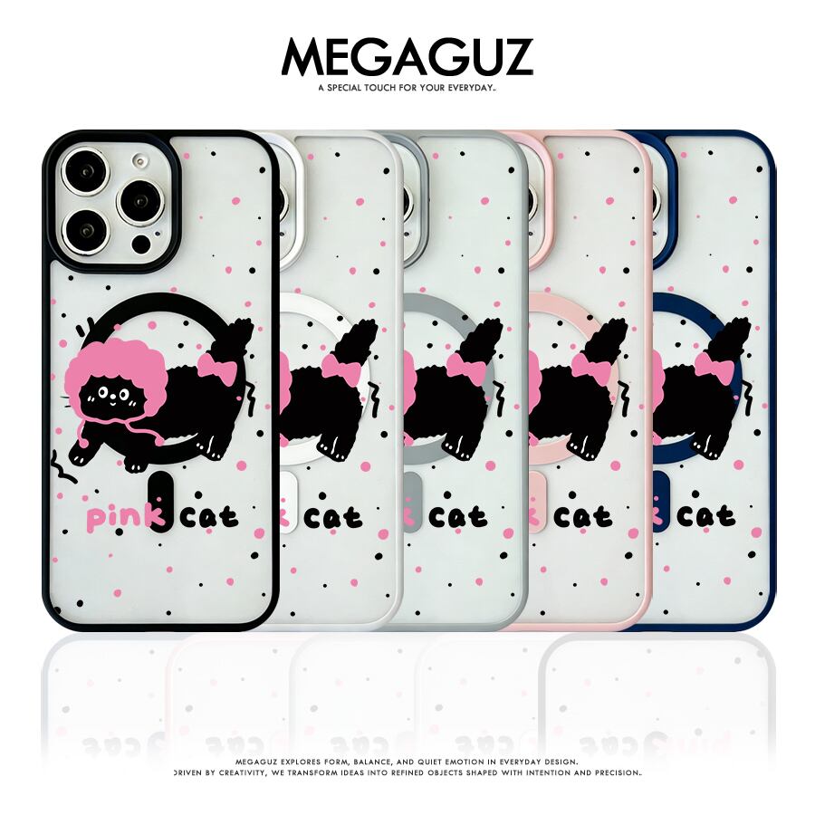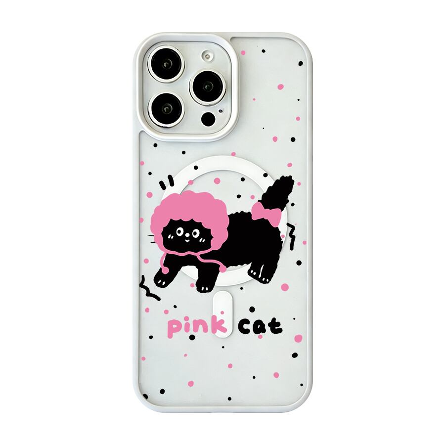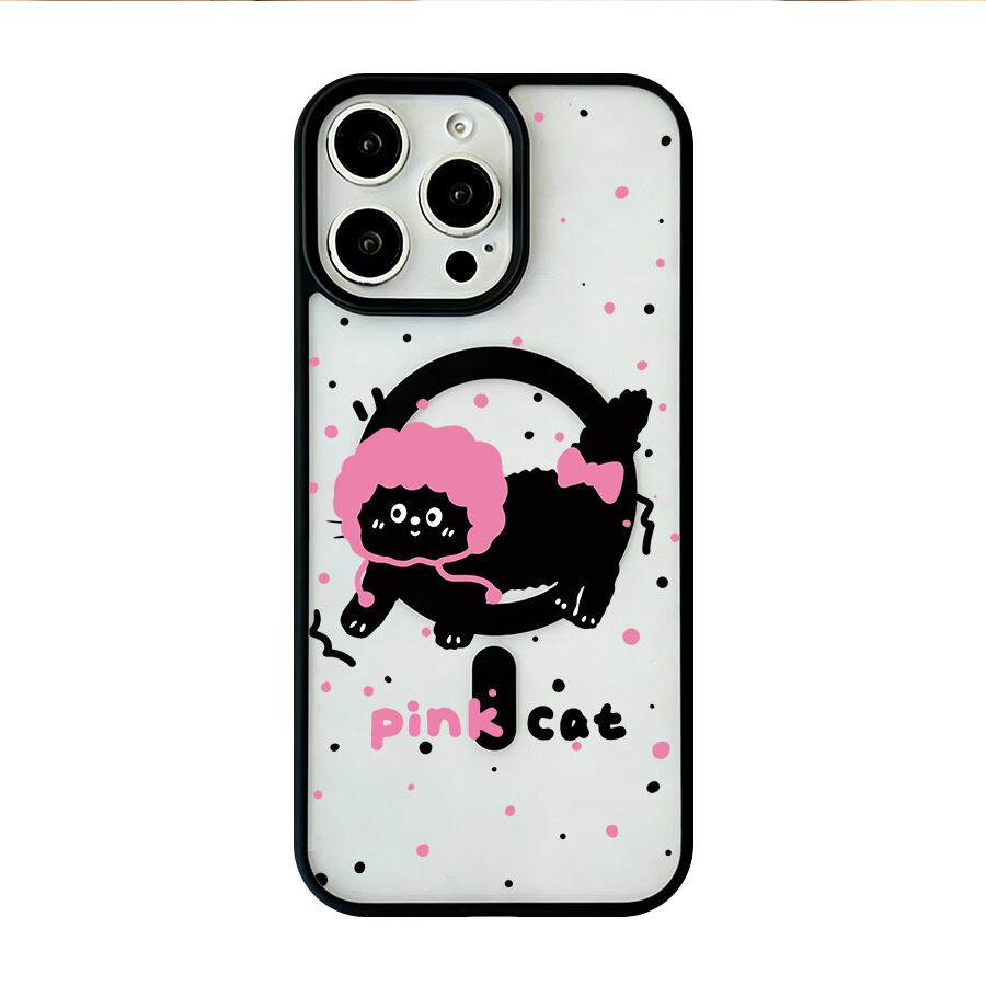 iPhone 17 16 15 14 13 12 Pro Max スマホケース iPhone 17e/16eケース ピンクドットの癒しキャットデザインプリントケース 可愛いシンプル軽量薄型カラーフレームMagsafeケース