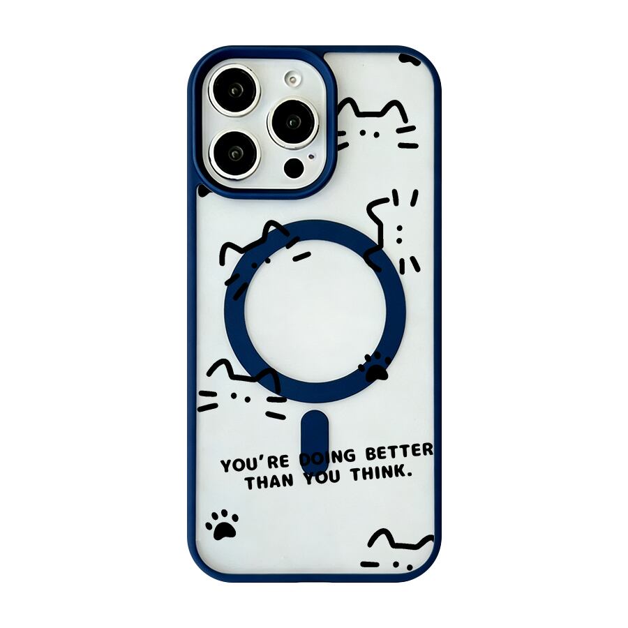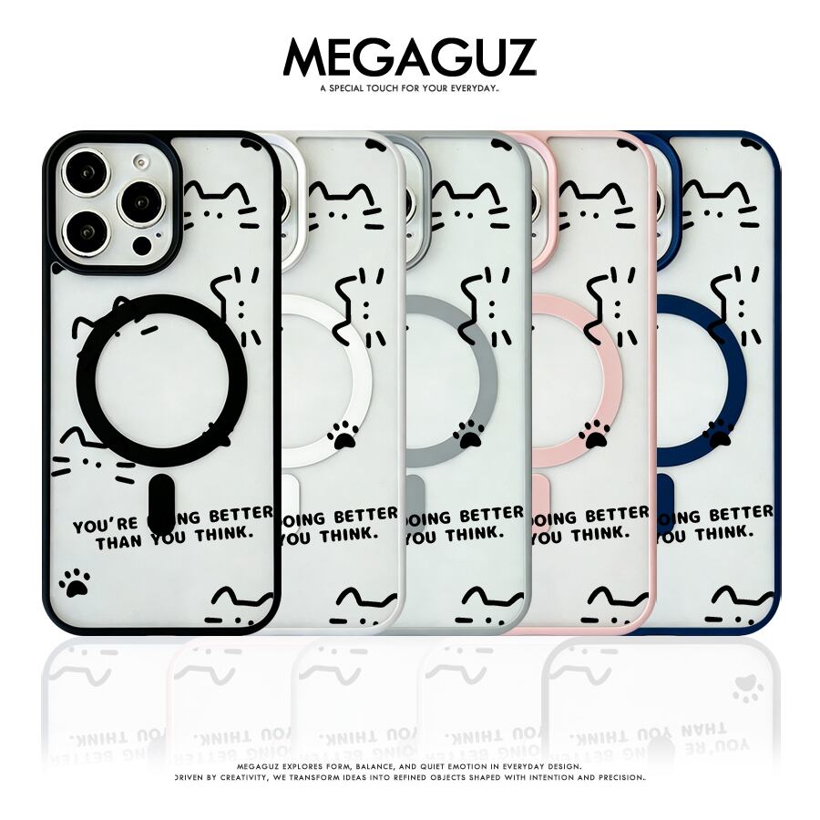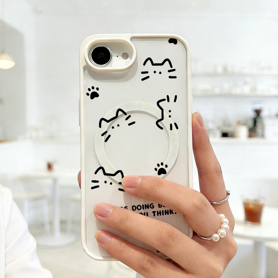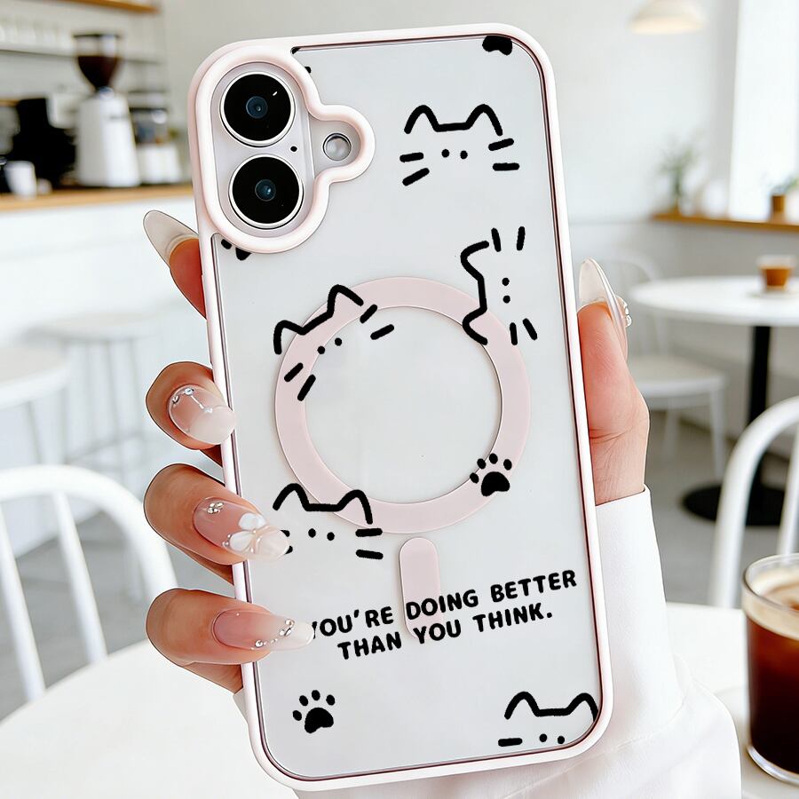 iPhone 17 16 15 14 13 12 Pro Max スマホケース iPhone 17e/16eケース ミニマル線画ねことポジティブメッセージデザインプリントケース 可愛いシンプル軽量薄型カラーフレームMagsafeケース