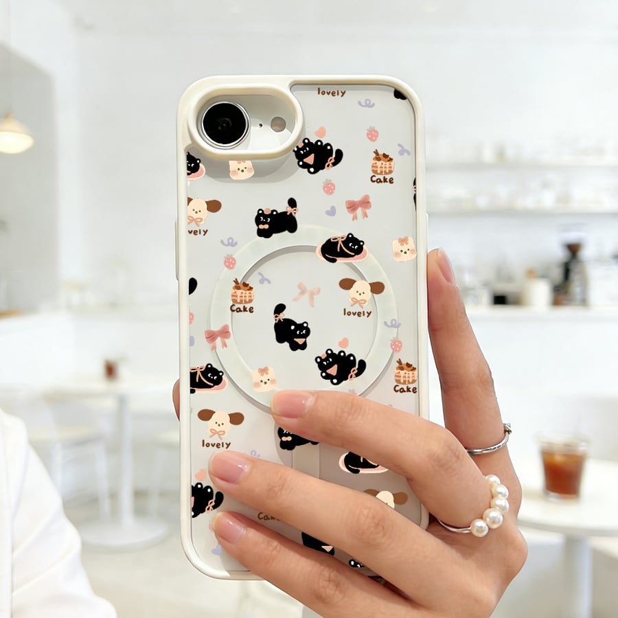 iPhone 17 16 15 14 13 12 Pro Max スマホケース iPhone 17e/16eケース 小さめ総柄ゆる可愛いねこデザインプリントケース 可愛いシンプル軽量薄型カラーフレームMagsafeケース