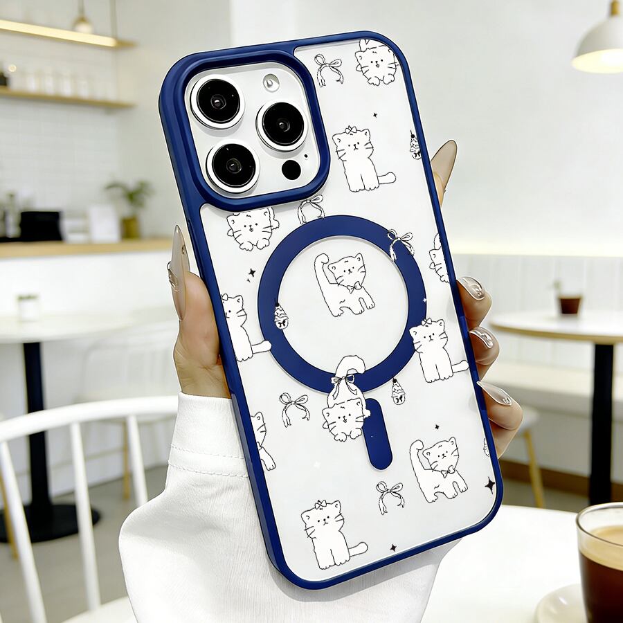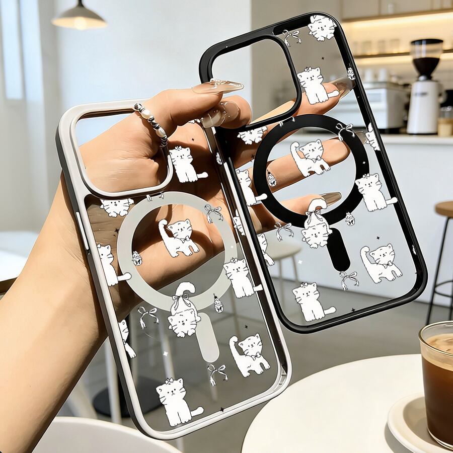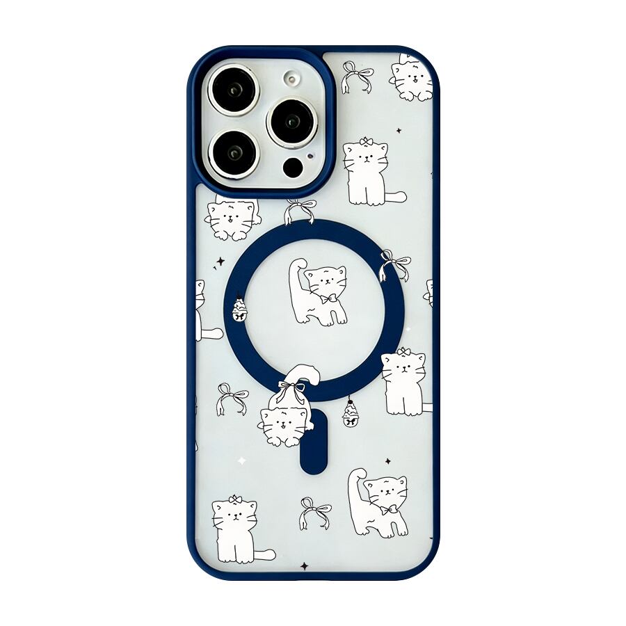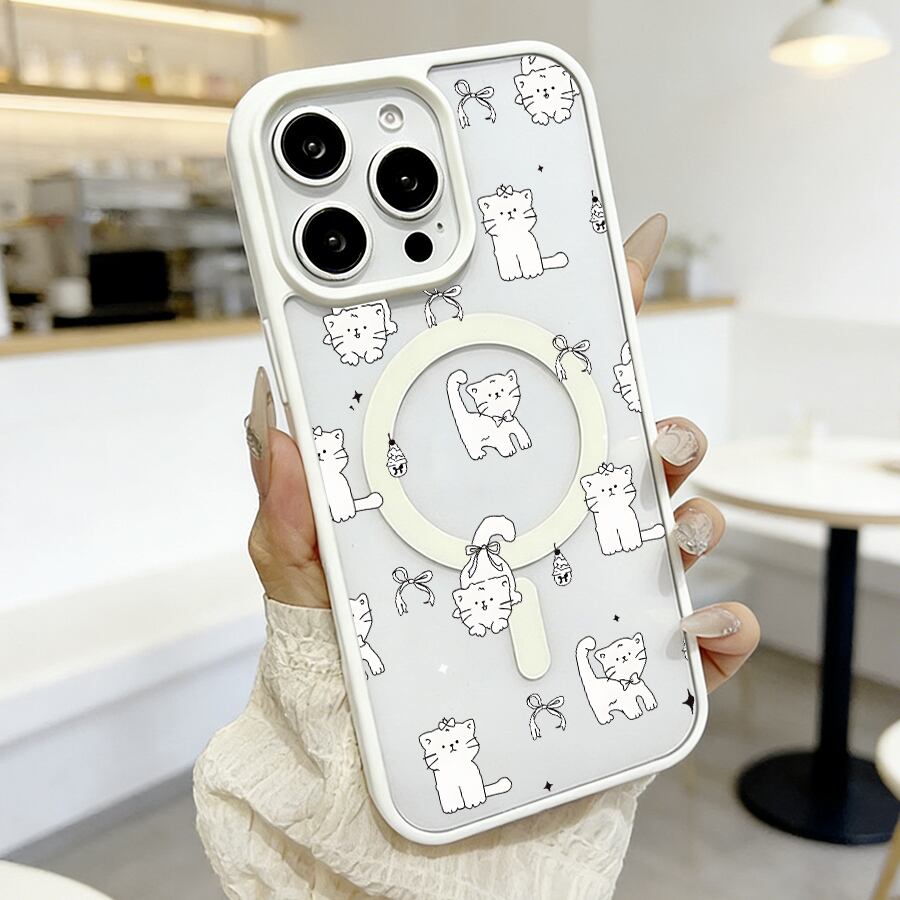iPhone 17 16 15 14 13 12 Pro Max スマホケース iPhone 17e/16eケース 線画ゆる可愛いねこパターンデザインプリントケース 可愛いシンプル軽量薄型カラーフレームMagsafeケース