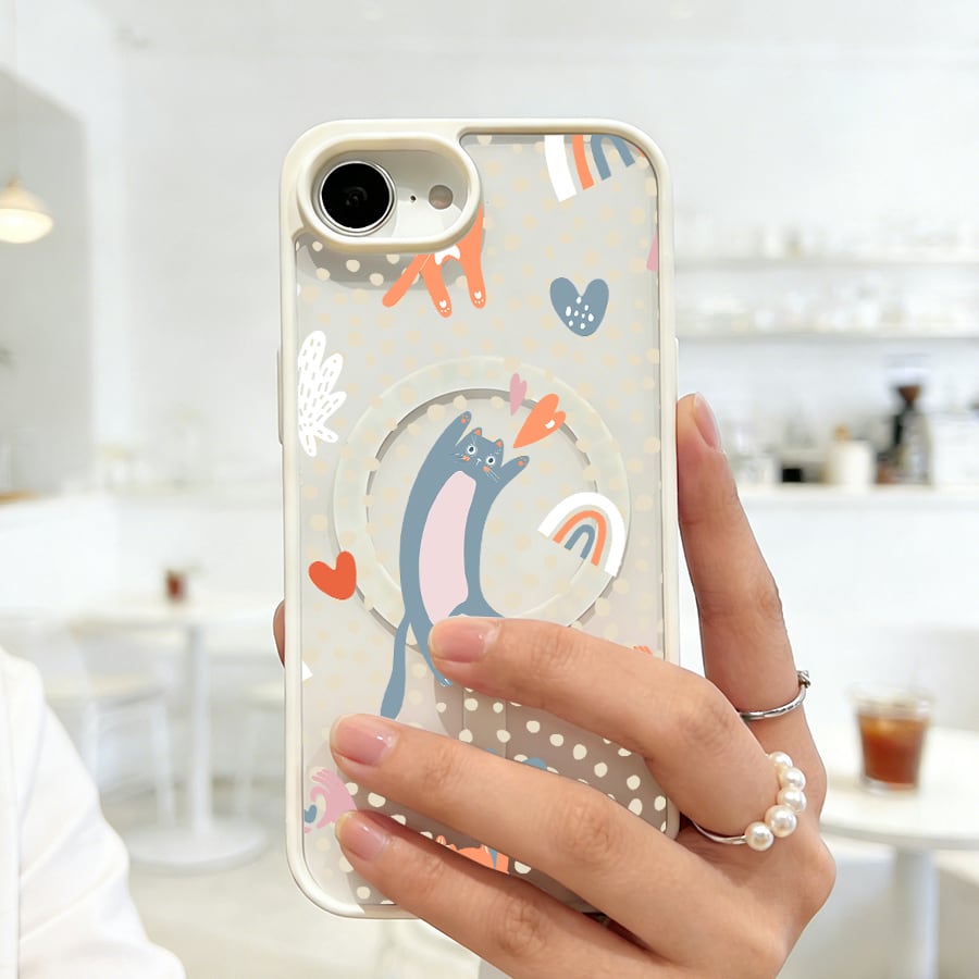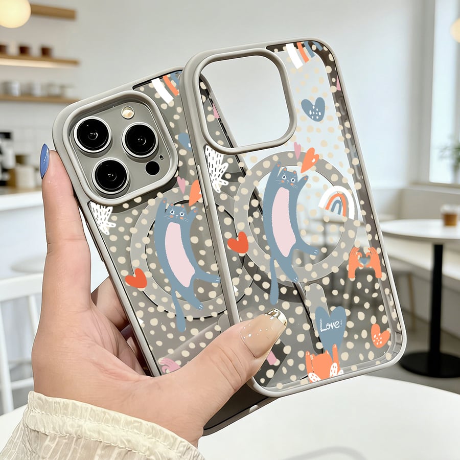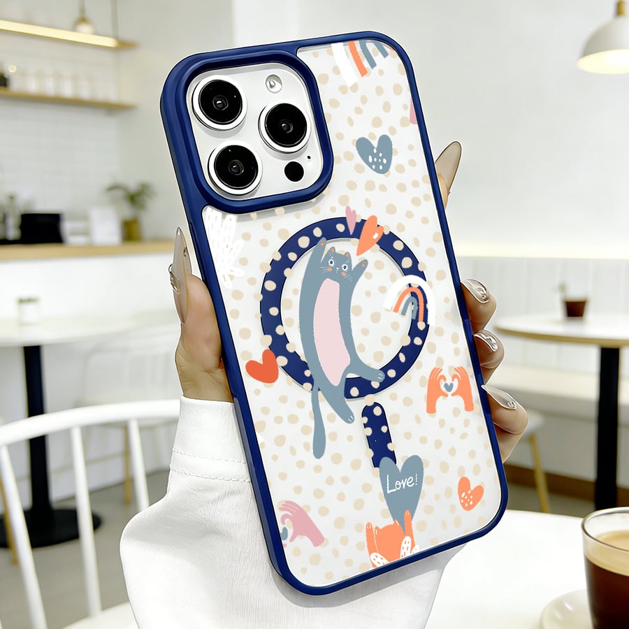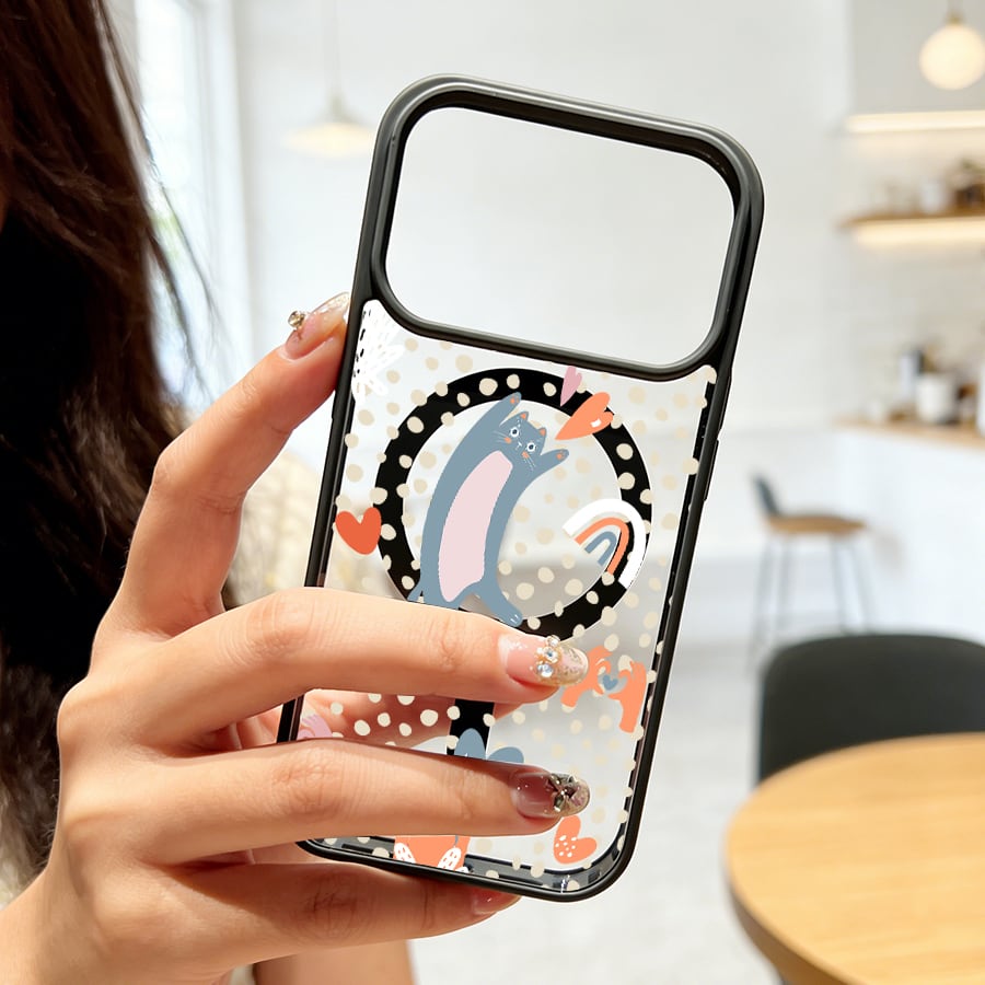 iPhone 17 16 15 14 13 12 Pro Max スマホケース iPhone 17e/16eケース 猫とハートの総柄可愛いデザインデザインプリントケース 可愛いシンプル軽量薄型カラーフレームMagsafeケース