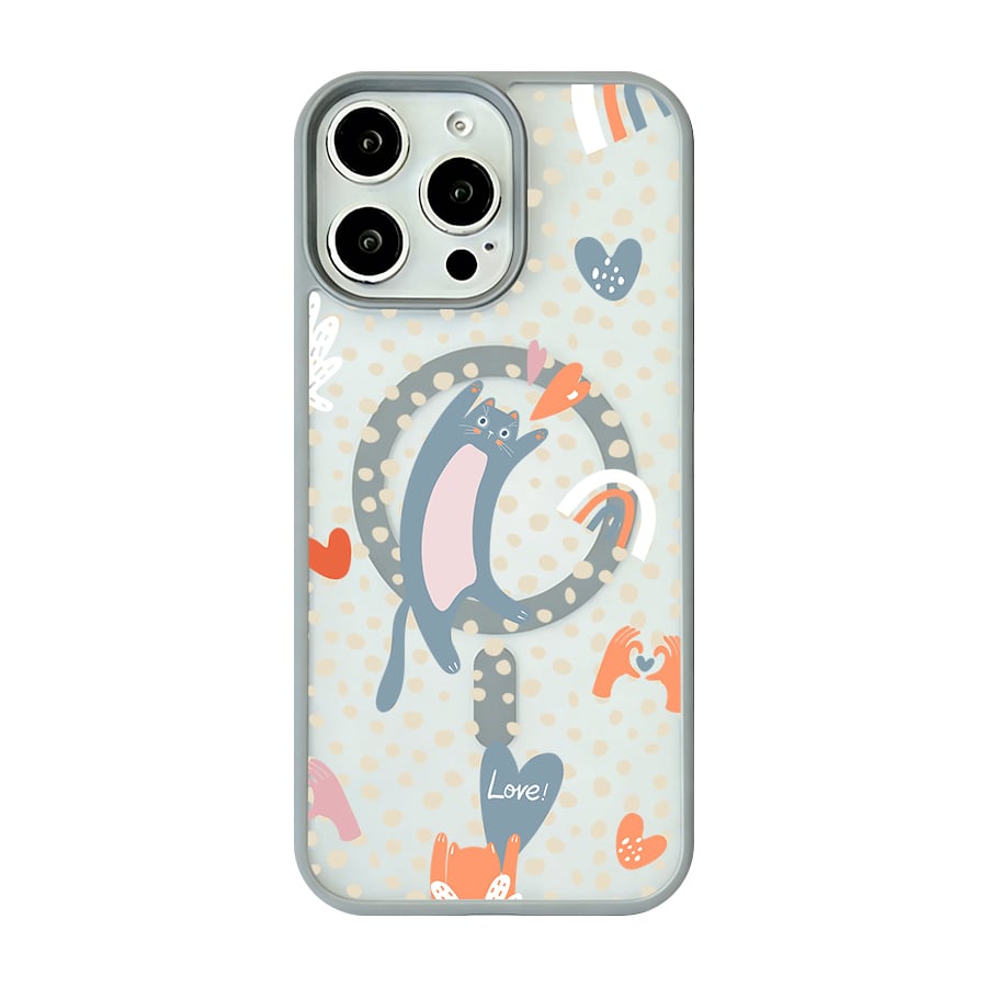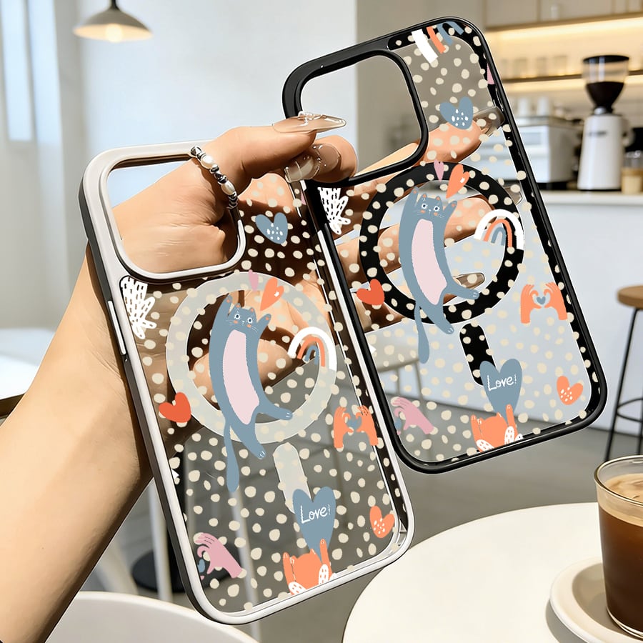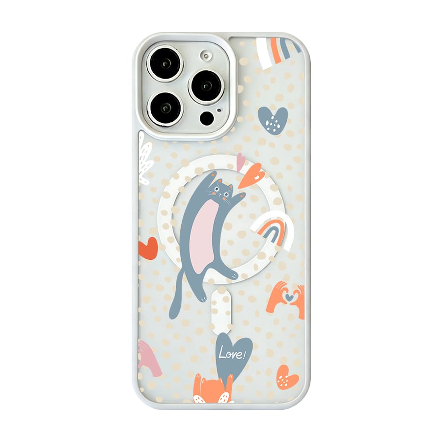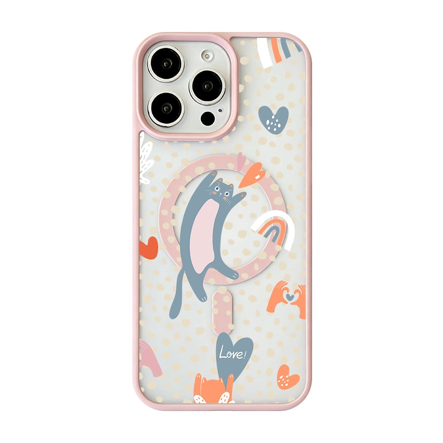 iPhone 17 16 15 14 13 12 Pro Max スマホケース iPhone 17e/16eケース 猫とハートの総柄可愛いデザインデザインプリントケース 可愛いシンプル軽量薄型カラーフレームMagsafeケース