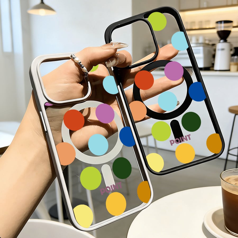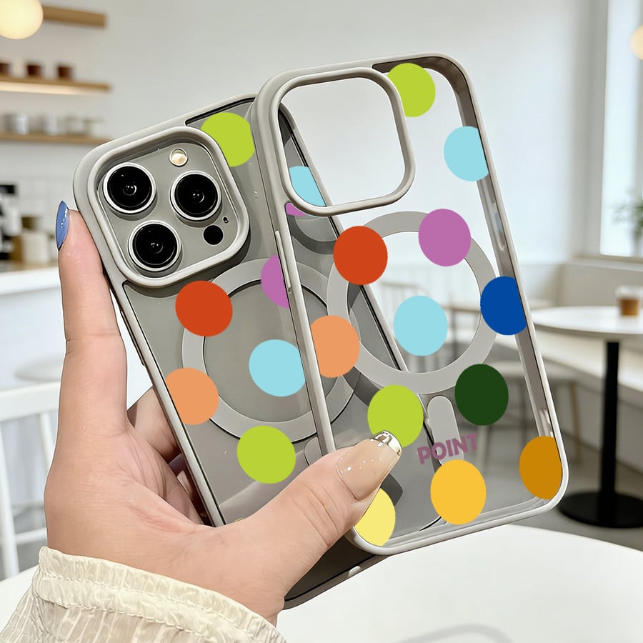iPhone 17 16 15 14 13 12 Pro Max スマホケース iPhone 17e/16eケース カラフルドットポップ柄デザインプリントケース 可愛いシンプル軽量薄型カラーフレームMagsafeケース