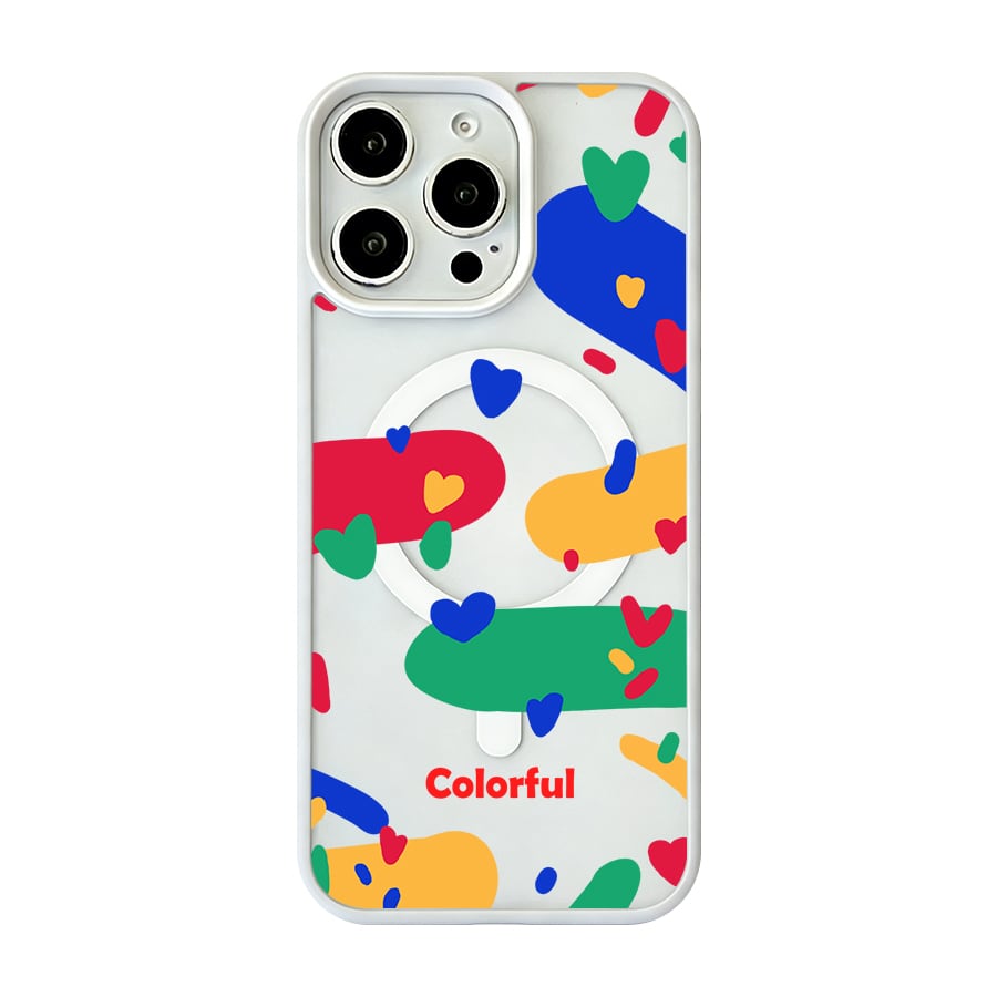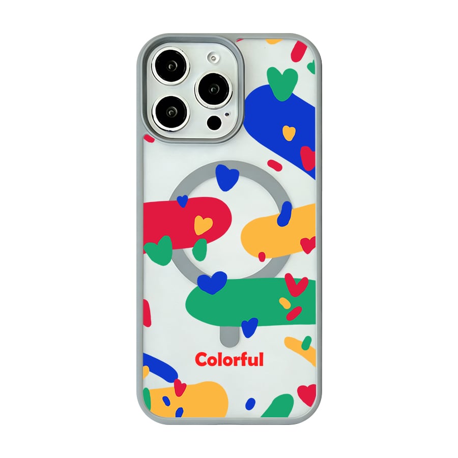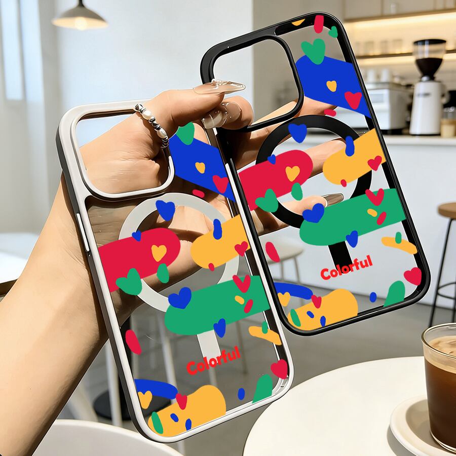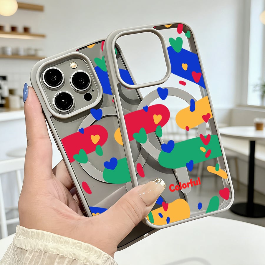 iPhone 17 16 15 14 13 12 Pro Max スマホケース iPhone 17e/16eケース カラフルハートポップ総柄デザインプリントケース 可愛いシンプル軽量薄型カラーフレームMagsafeケース