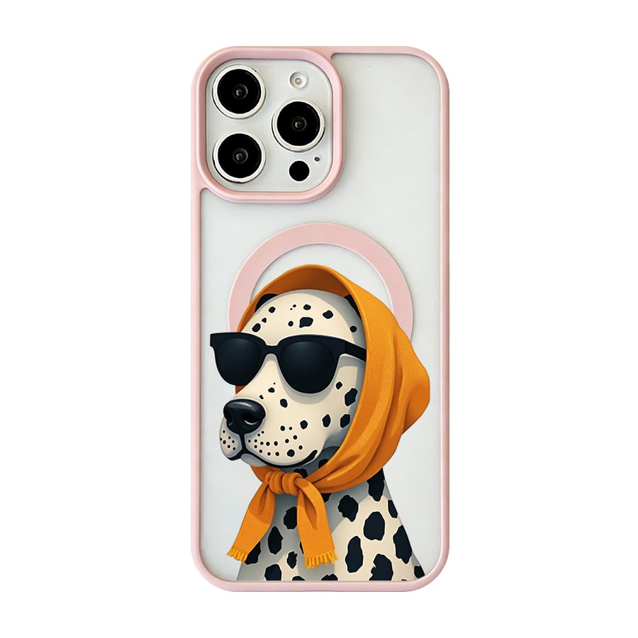 iPhone 17 16 15 14 13 12 Pro Max スマホケース iPhone 17e/16eケース サングラスをかけたお洒落な犬デザインプリントケース 可愛いシンプル軽量薄型カラーフレームMagsafeケース